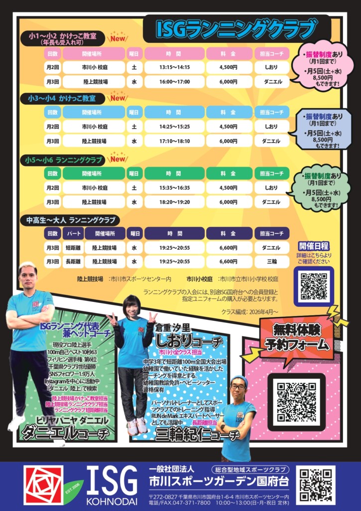 毎回人気で満席となる、ISGランニングクラブの体験会を3/14(土)市川小で行います! 詳細は下記URLよりご覧ください。